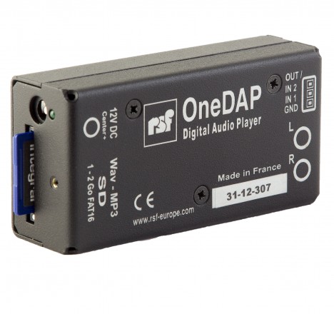 The OneDAP is a compact audio player specially designed for easy installation in stand alone or centrally controlled situations. Its small size and simple connectivity enables an easy and fast installation. The latest single audio player in the RSF ProDAP product line, the OneDAP benefits from RSF’s long experience of offering extreme reliability, flexibility, and ease of programming. The OneDAP is designed to replace CD players wherever reliability is a requirement.